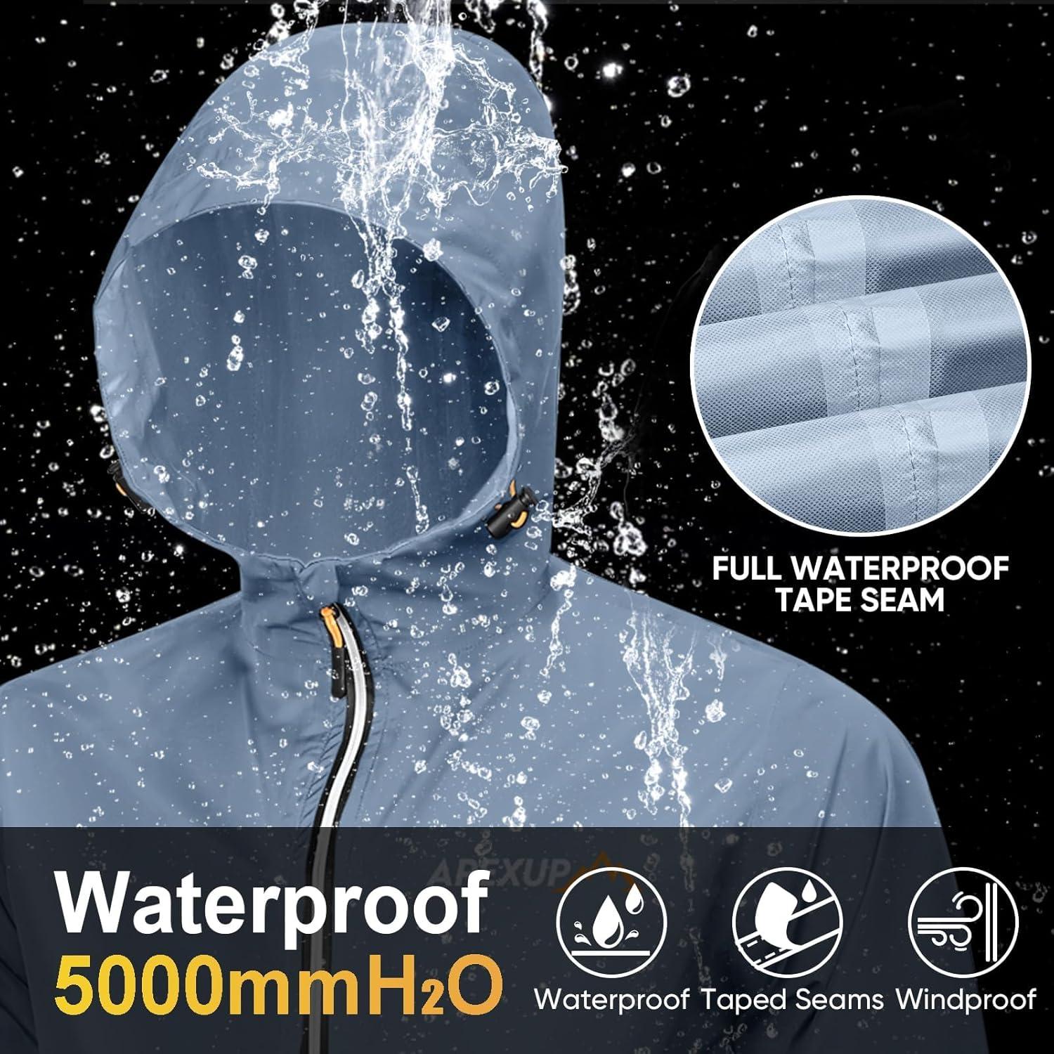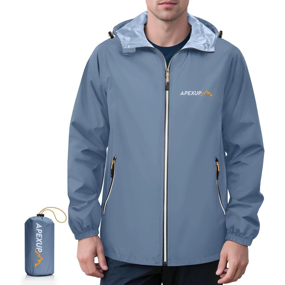imageAPEXUP Packable Rain Jacket Men with Reflective Zipper Lightweight Waterproof Raincoat Mens Rain Jacket for Outdoor SportsDusty Blue
